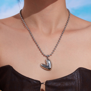 P1189-钢色钢珠爱心项链41+5cm