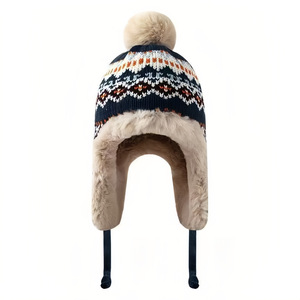 毛线民族风帽秋冬季女护耳毛绒包头套头帽骑车防风加绒保暖针织帽