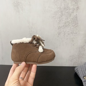 外翻毛卡通毛绒兔子挂件装饰磨砂皮宝宝学步小棉靴2025年女童冬款