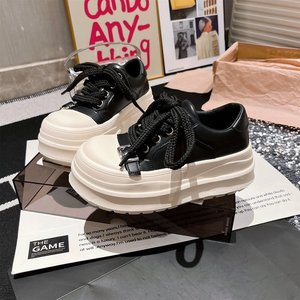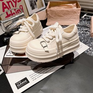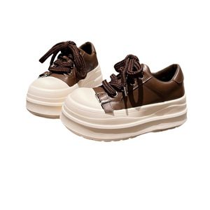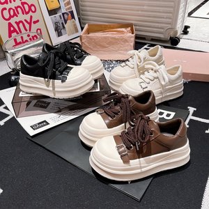 2025年金属扣真皮大头系带厚底松糕面包鞋休闲板鞋小个子德训女鞋