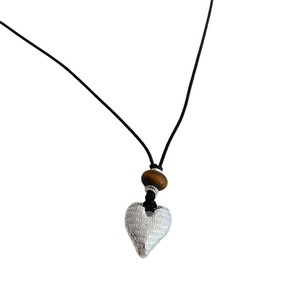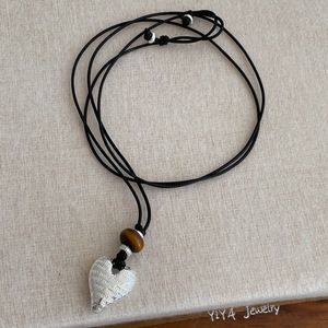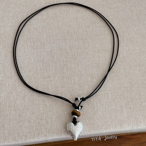秋冬新款银色字母爱心吊坠项链复古时尚皮绳长款毛衣链颈链配饰品