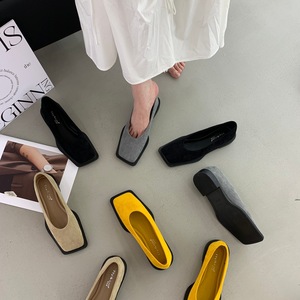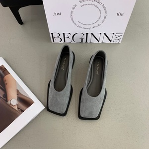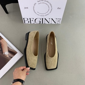 韩版复古晚晚风绒面方头小皮鞋百搭不累脚乐福鞋一脚蹬通勤单鞋女