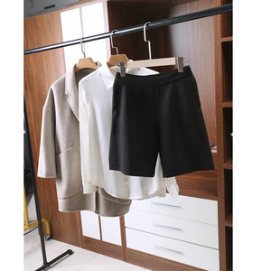 简约慵懒感阔腿针织短裤女2025秋冬新款高腰A字抽绳毛织休闲裤子