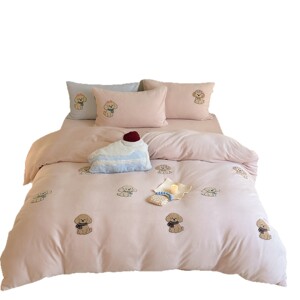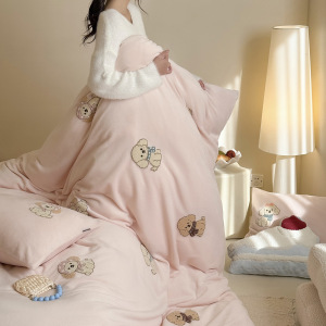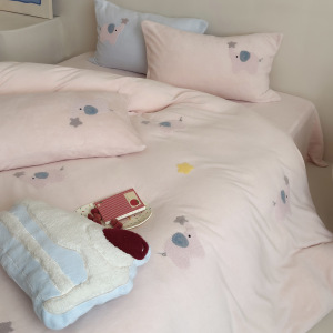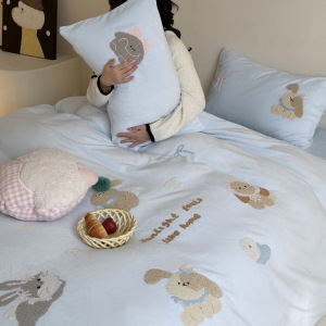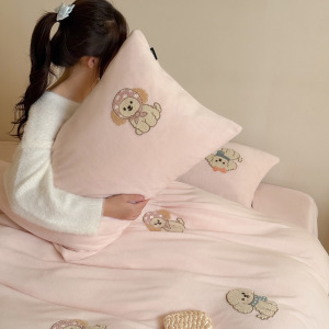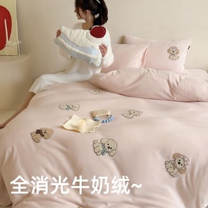 奶萌布迪狗狗!秋冬纯色全消光牛奶绒四件套立体毛巾绣花被套1.8m
