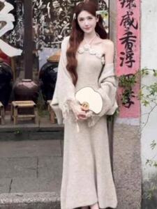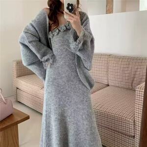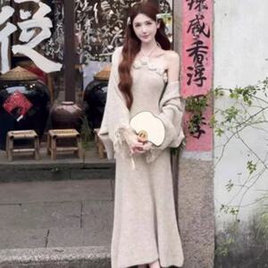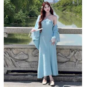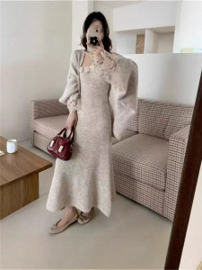 2025新款秋装穿搭一整套高级感减龄针织毛衣开衫挂脖连衣裙两件套