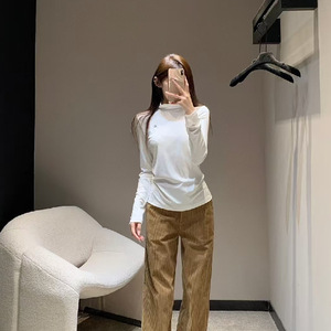 秋冬新款ce凯旋门刺绣弹力显瘦简约百搭高领打底衫长袖T恤上衣女