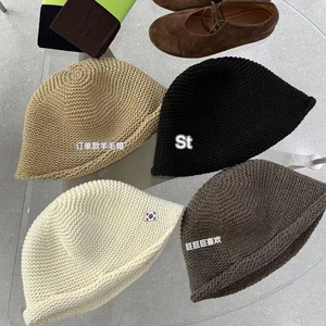 日韩出口含20%羊毛折边针织帽冬保暖纯色简约渔夫帽圆顶毛线盆帽