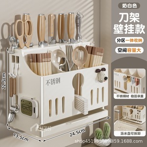 【不锈钢】奶白·刀筷筒架(壁挂款)送4钩