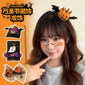 新款万圣节儿童头箍橙色蝴蝶结发夹搞怪女巫发饰派对装饰拍照头饰