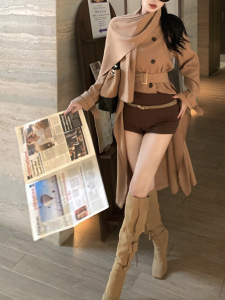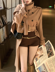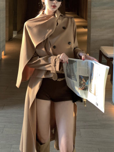 英伦高级感裙摆风衣外套女秋法式名媛不规则设计感中长款收腰大衣