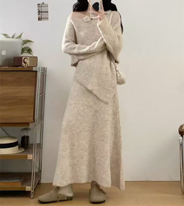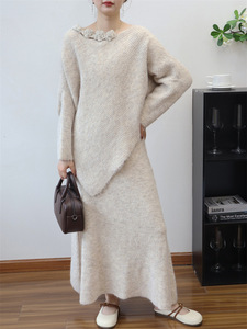法式温柔风立体花朵宽松设计感不规则气质毛衣女针织衫两件套装潮