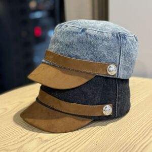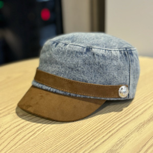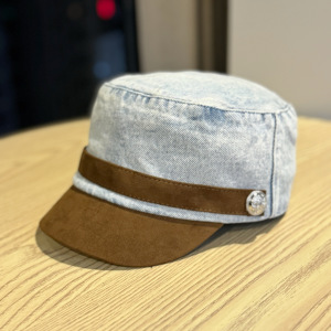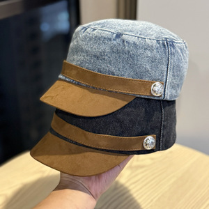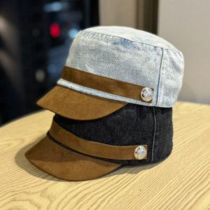 韩版拼色麂皮绒平顶牛仔马术帽ins风女春夏复古八角帽显脸小休闲