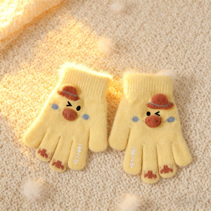 儿童手套3-8岁冬季男女你好鸭可爱加厚立体卡通五指防寒保暖幼儿