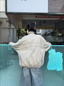AC南油新款刺绣风衣夹克秋冬美式休闲宽松廓形立领拉链外套