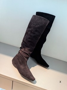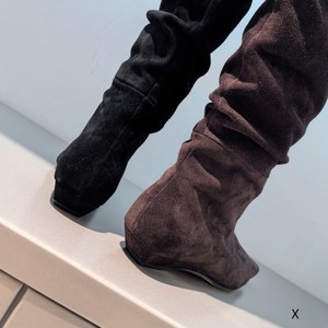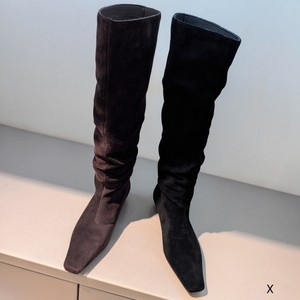 欧洲站XJ女鞋25冬时尚软牛猄皮小方头舒适休闲套筒低坡跟堆堆长靴