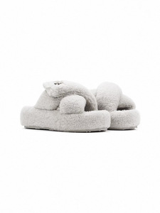 2025秋冬新款~十字花交叉毛毛拖鞋女厚底百搭休闲一脚蹬拖鞋