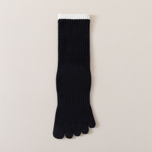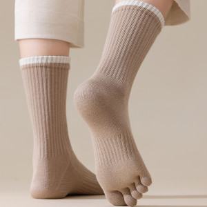 韩系撞色五指袜女春秋ins中筒袜吸汗透气抗菌百搭分趾长筒棉袜子