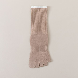 D8070条纹五指袜-浅咖