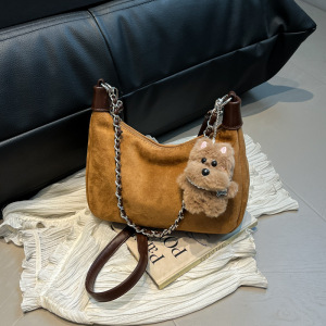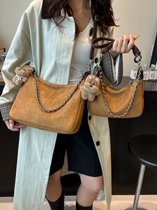 复古麂皮绒包包女2025秋冬新款百搭斜挎包时尚超火单肩腋下饺子包