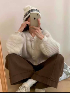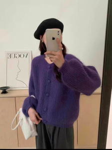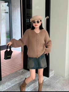0911-158貂绒加厚 特厚毛衣女圆领长毛氛围感羊毛开衫外套女