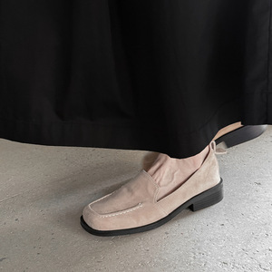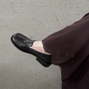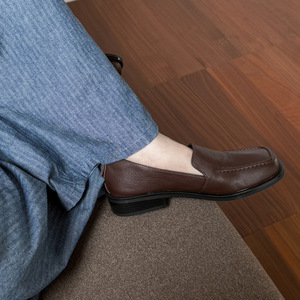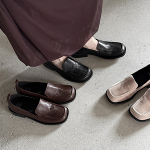 舒适柔软不累脚韩版方头方跟纯色一脚蹬单鞋女法式低跟懒人乐福鞋