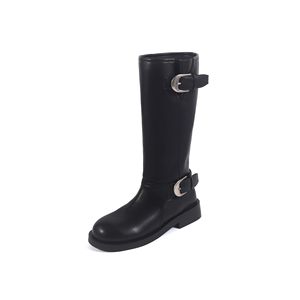 靴子女长筒靴2025秋冬季新款粗跟圆头拼接西部靴褶皱堆堆靴骑士靴