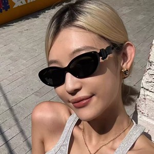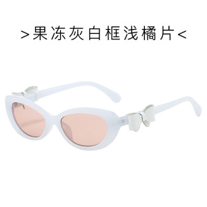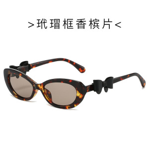 欧美复古小香风椭圆小框墨镜女高级感蝴蝶结凹造型防紫外线太阳镜