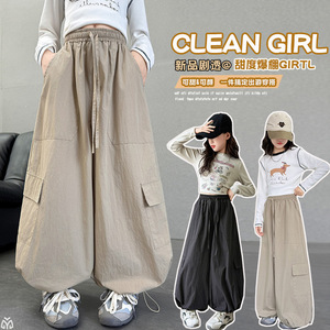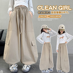 女童潮酷工装裤春秋款裤子2025新款女大童秋装套装儿童秋季阔腿裤