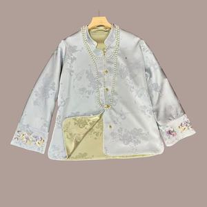 双面双穿新中式国风原创桑蚕丝提花重工刺绣外唐装开衫外套春秋