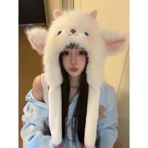 冬季卡通小羊毛绒帽显脸小氛围感雷锋帽保暖捏捏耳朵会动可爱百搭