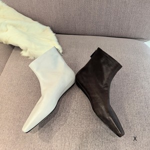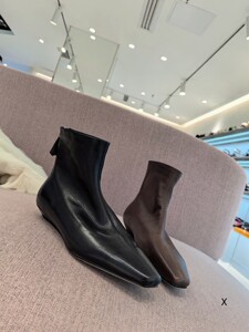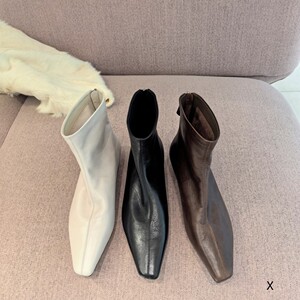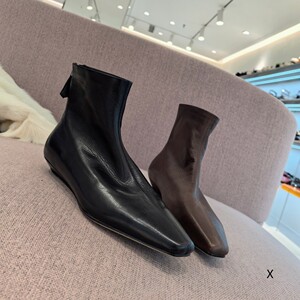 欧洲站XJ女鞋25冬时尚软摔纹胎牛皮小方头舒适后拉链低坡跟皮短靴