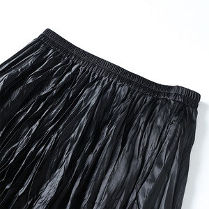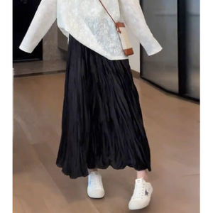 高级感光泽感a字半身裙女秋季新款2025显瘦宽松中长款气质百褶裙