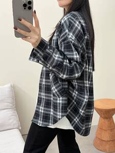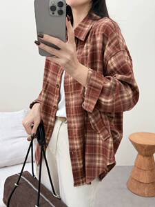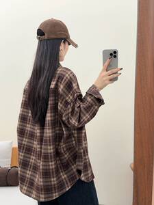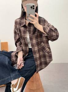 2025秋季新款时尚气质格子衬衫女宽松显瘦中长款休闲百搭上衣外套