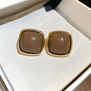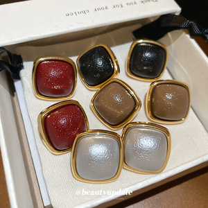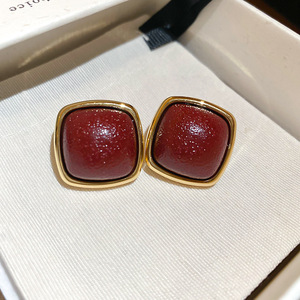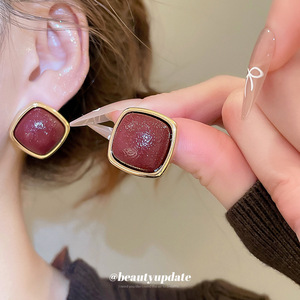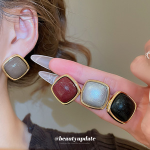 银针皮革菱形吊坠耳钉秋冬款时尚简约百搭气质耳环小众设计感耳饰