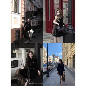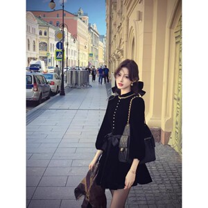 吃绿色菜伯拉德千金 新品赫本风黑色丝绒长袖连衣裙秋季
