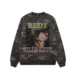2025秋季美式复古趣味迷彩kt猫卫衣女宽松慵懒情侣设计感上衣