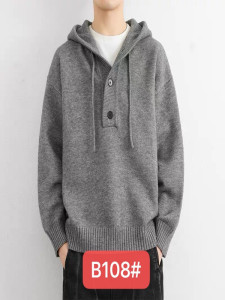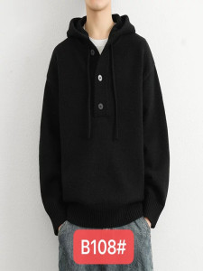 美拉德式爆款潮牌秋冬连帽毛衣半开衫纽扣情侣外穿套头针织衫男女