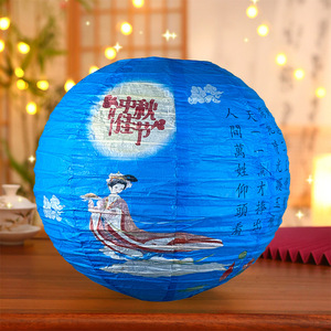 【中秋佳节-蓝色】中秋纸灯笼30公分