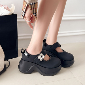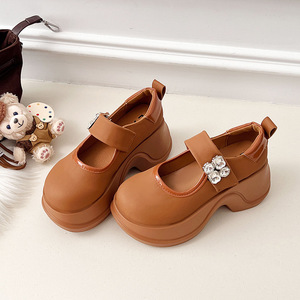 法式魔术贴厚底小众2025春秋松糕底玛丽珍鞋增高复古鞋大头小皮鞋