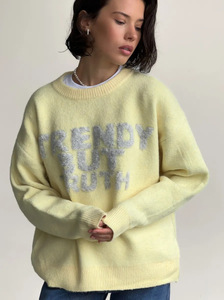 慵懒风字母软糯毛衣女秋冬设计感小众宽松显瘦圆领针织上衣女欧美