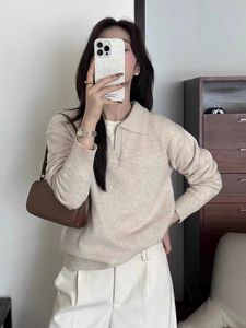 女款100纯羊毛衫半开翻领毛衣秋冬新款经典纯色休闲日常风套头衫