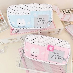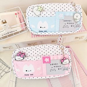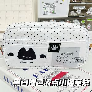 可爱波点小猫多层大容量学生高颜值文具收纳铅笔袋
