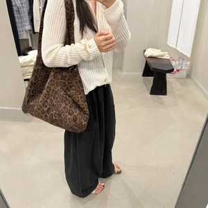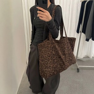 韩国店主自留推荐高质感麂皮豹纹托特包韩国秋冬加厚大容量包袋女