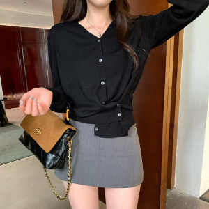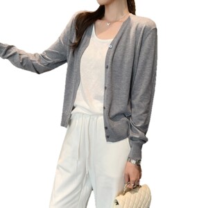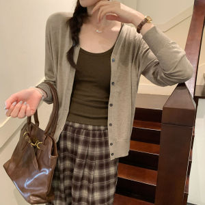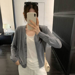 巨好看V领外搭薄款长袖针织开衫外套女2025新款宽松慵懒早秋上衣