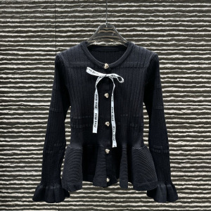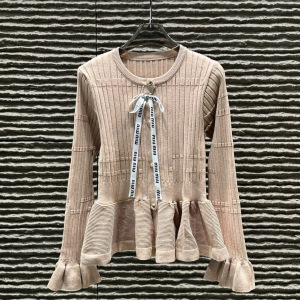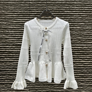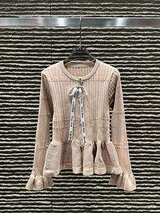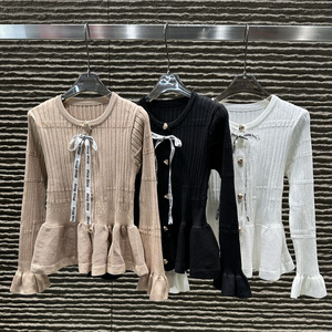 mm25秋冬新款减龄甜美蝴蝶结丝带针织花边长袖