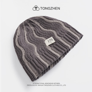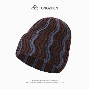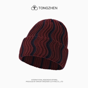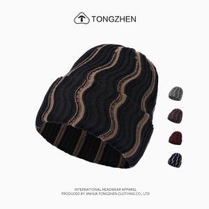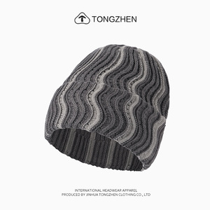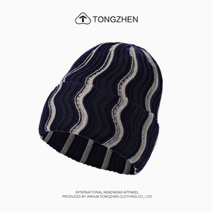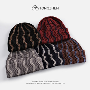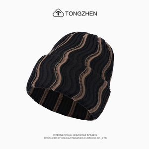 小众设计感波浪纹针织帽子秋冬卷边潮酷个性街头百搭毛线帽冷帽女