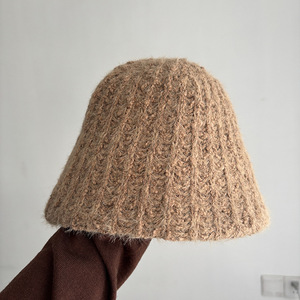 秋季新款毛绒针织渔夫帽女简约甜美水桶帽潮时尚帽子