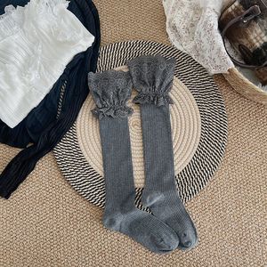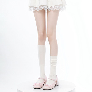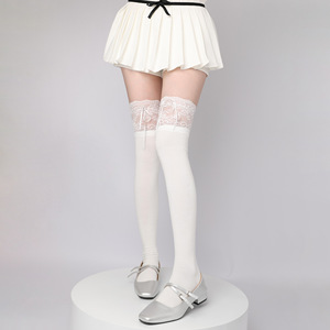 蕾丝花边长筒袜纯欲拼接白丝大腿袜平板镂空靴袜子女jk芭蕾风小腿