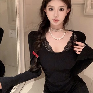 昕可达 心机内搭 纯欲蕾丝拼接打底衫女冬季百搭修身针织衫