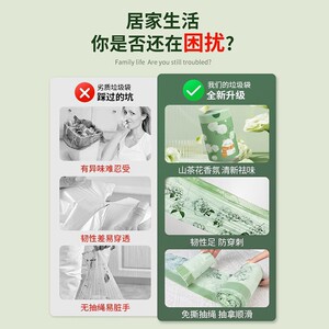 【山茶花特厚】抽绳手提免撕印花垃圾袋加厚收纳袋家用清洁剂套装